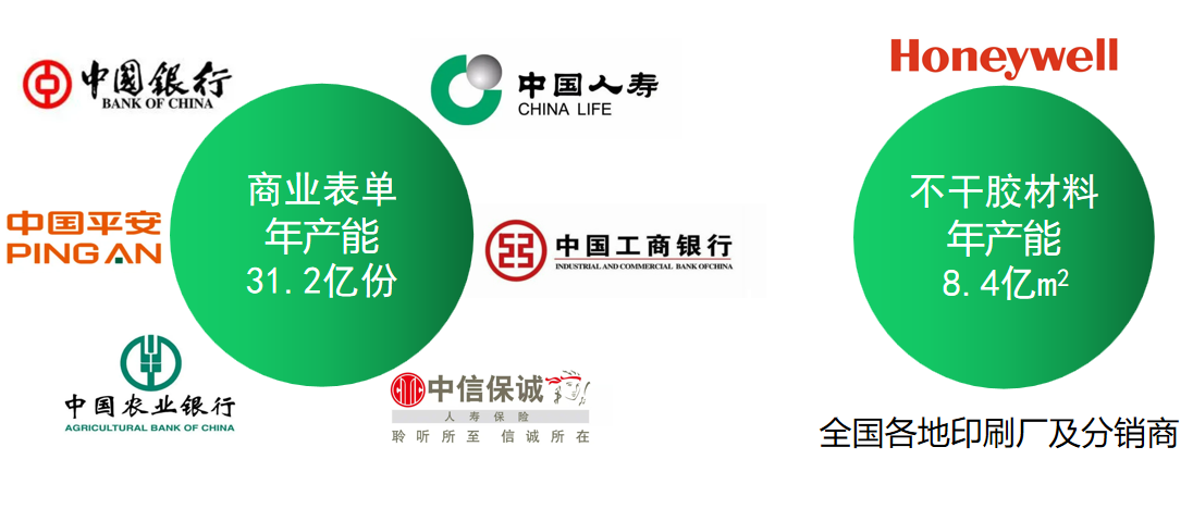 產(chǎn)品涵蓋電子面單、快遞運單及快遞包裝材料等全系列快遞物流應用材料產(chǎn)品,生產(chǎn)規模和綜合實(shí)力在行業(yè)內處于前列,也是行業(yè)內少數實(shí)現產(chǎn)業(yè)鏈延伸、提供全系列快遞物流應用材料產(chǎn)品及綜合服務(wù)的企業(yè)之一。目前公司憑借應用技術(shù)及產(chǎn)品創(chuàng )新優(yōu)勢,產(chǎn)品線(xiàn)向金融、醫藥、家用電器、環(huán)保紙塑等行業(yè)拓展,形成品類(lèi)豐富的產(chǎn)品體系,產(chǎn)品市場(chǎng)占有率高達40%,涵蓋京東、順豐、郵政等2000多家知名企業(yè)。